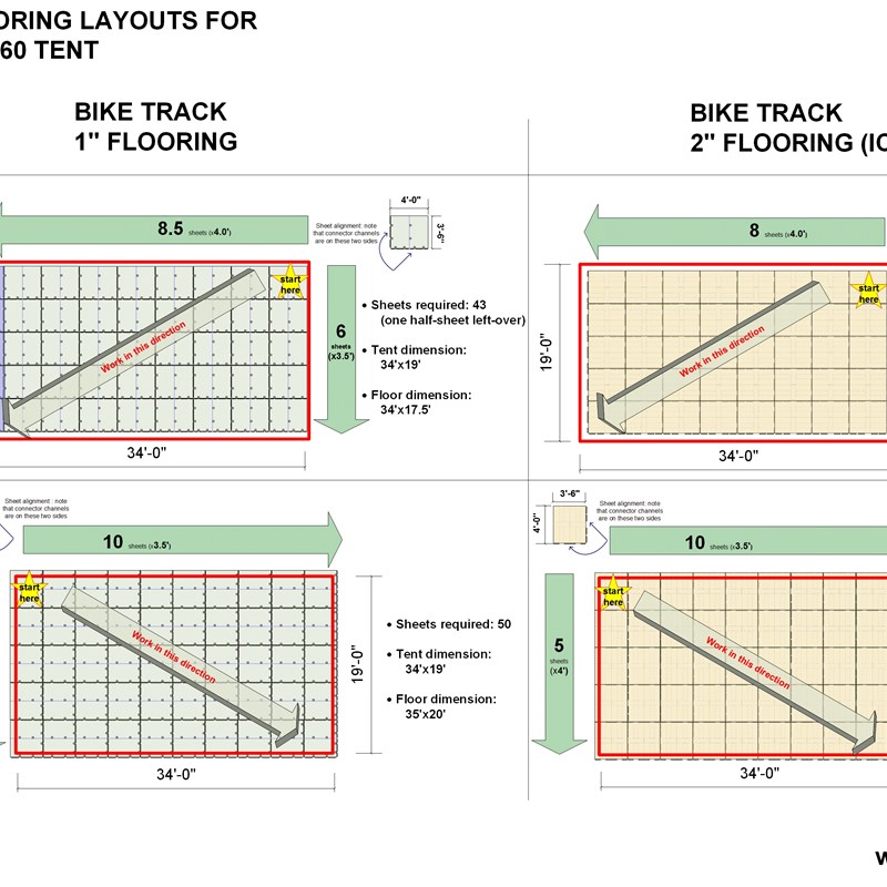 We have added additional Bike Track flooring layouts for use with the following shelter manufacturers under the "Layouts" tab: UTS Systems ZUMRO Air Shelters Celina Tent If there are other types of tents you'd like to see layouts for, please don't hesitate to get in touch with us. ...