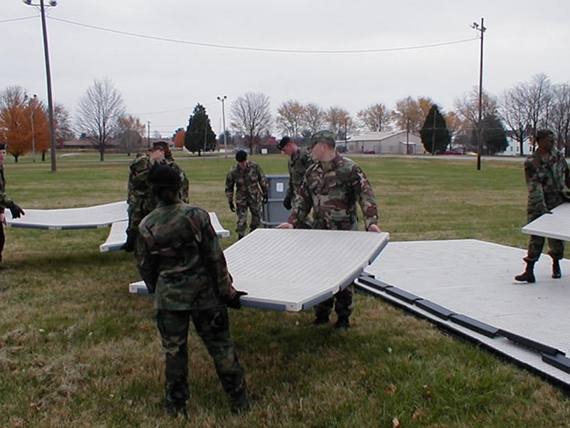 In 2000, after consulting with military research facilities and a number of shelter manufacturers, it became obvious that our portable, easily assembled, and weather-resistant tiles would be ideal for use as flooring under most tent and shelter configurations - with the added benefit of being reusable indefinitely and impervious to the rotting and limited longevity of plywood.
