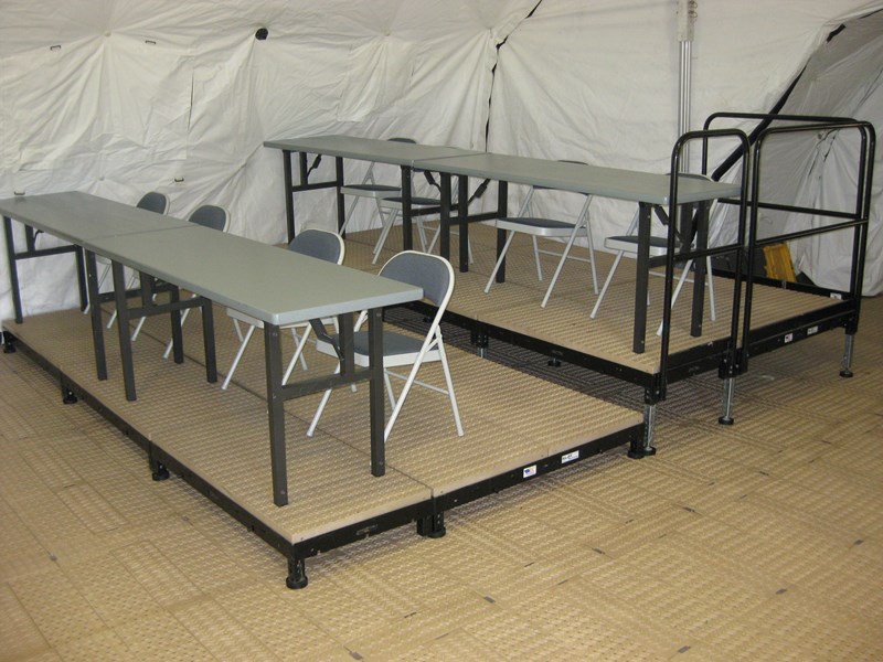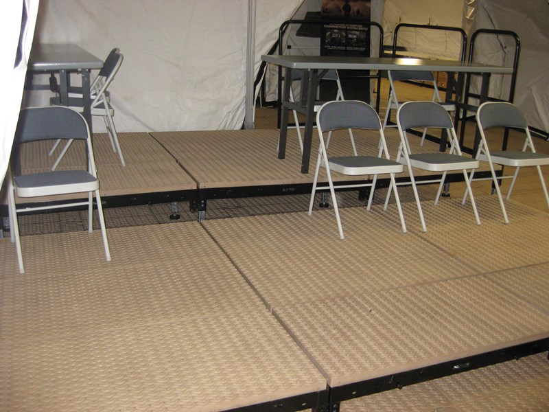 Available in three sizes, our portable staging platforms enhance your ability to communicate with personnel in a range of settings. They are decked with special 2 ft x4 ft Bike Track decking sheets, similar to our 2-inch standard flooring, but without the friction fit u-channels. Naturally, the staging systems can be placed on top of any of our plastic flooring products.